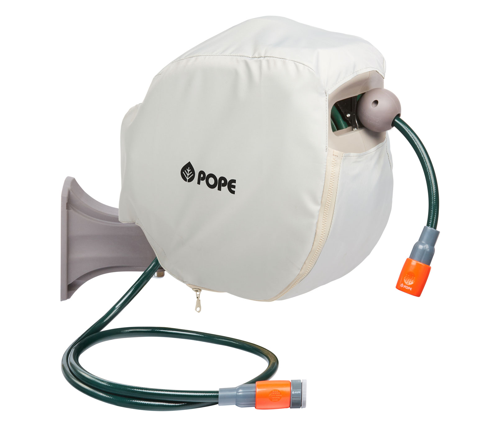 This is a wall mounted reel with a self layering design that automatically rewinds the hose without any kinks it comes with a wall bracket that allows for 180ยบ pivot so you can reach difficult areas of the garden.